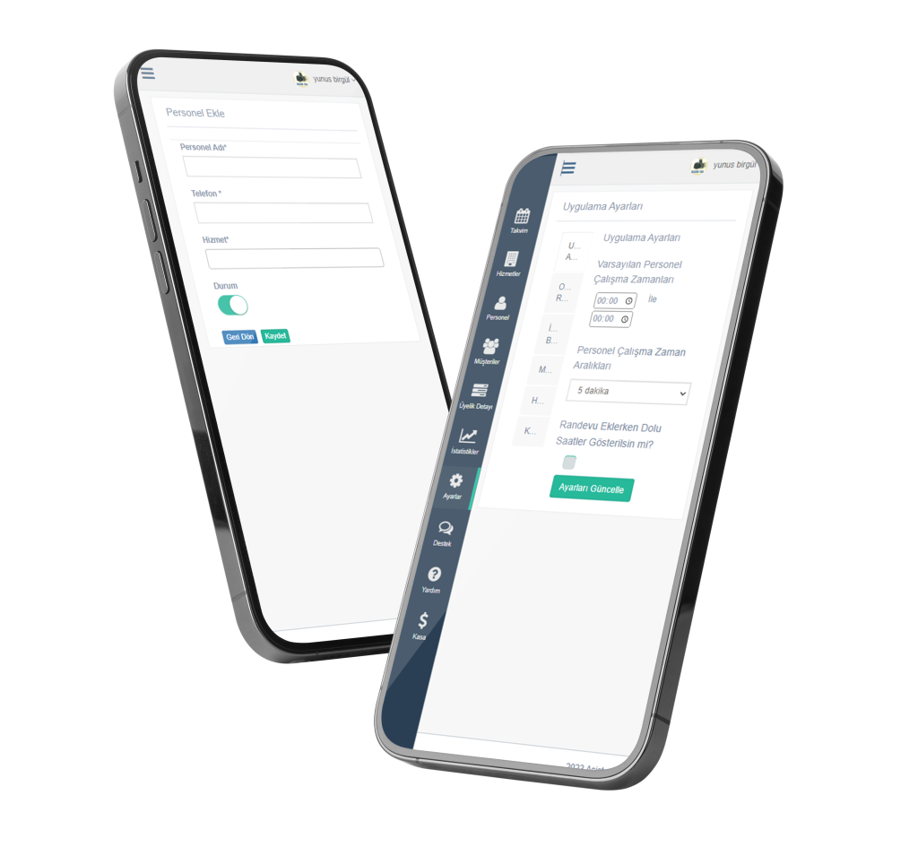İşletmede çalışan personellerin bilgilerini ve müsaitlik durumlarını yönetebilen özellik. Randevuları personeller arasında adil bir şekilde dağıtmak için kullanılır. sınırsız personel ekleyebilirsiniz